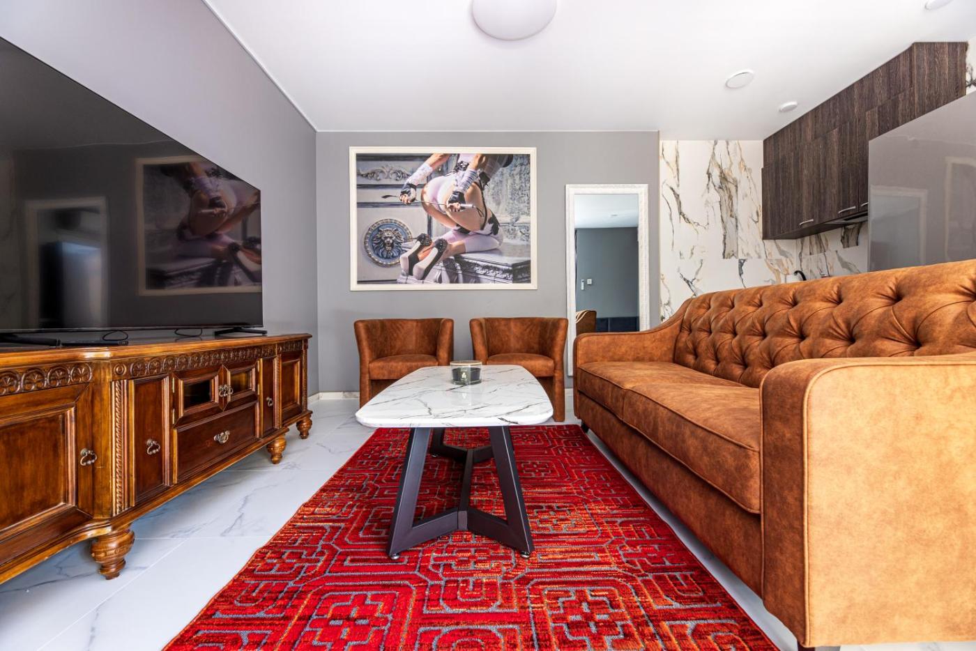 Apartment with Balcony. Featuring a private entrance, this air-conditioned apartment comprises 1 living room, 1 separate bedroom and 1 bathroom with a shower and a hairdryer. Guests will find a stovetop, a refrigerator, kitchenware and an oven in the fully equipped kitchen. The apartment also provides guests with a barbecue. Boasting a terrace with garden views, this apartment also provides soundproof walls and a flat-screen TV with satellite channels. The unit offers 2 beds.